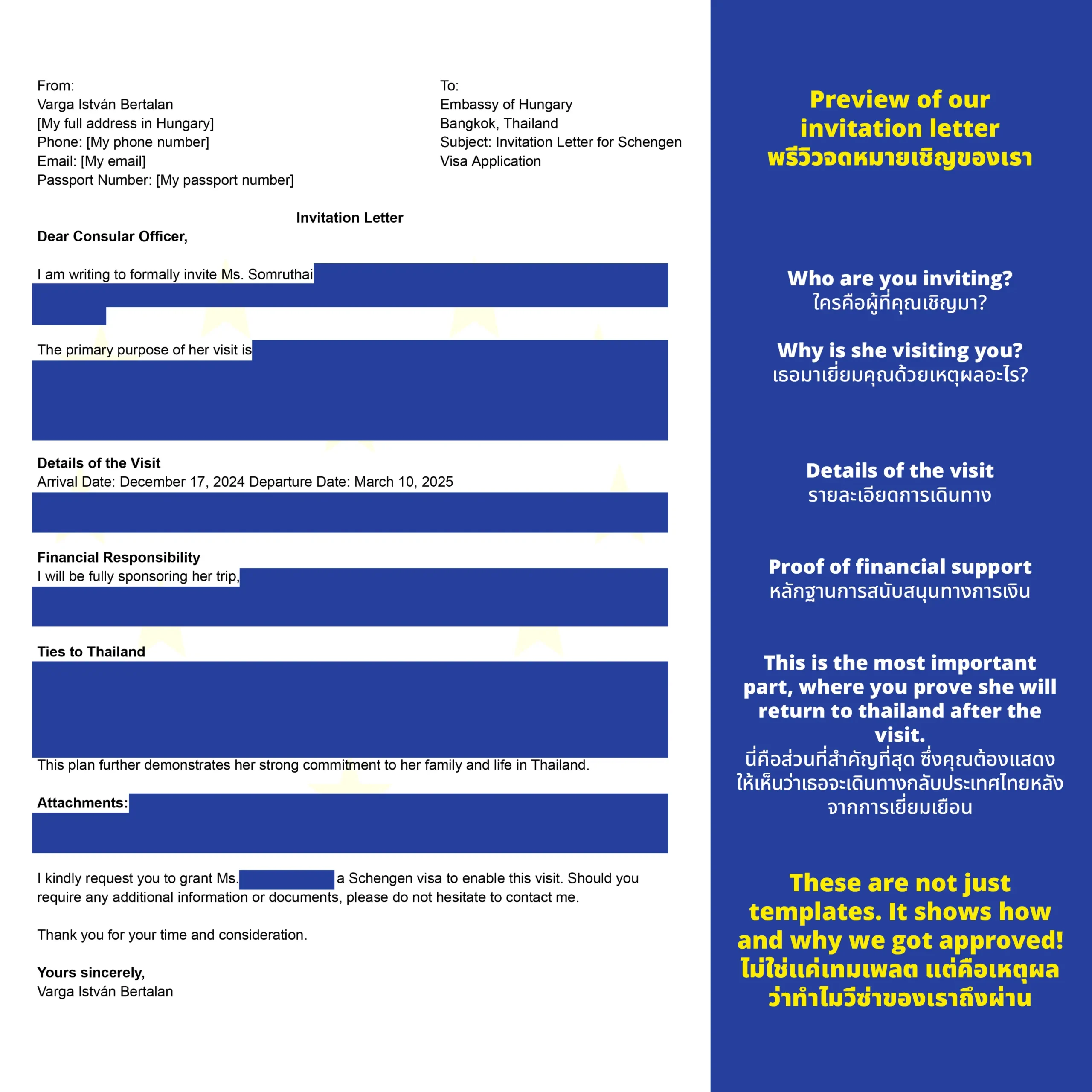 ดูตัวอย่างคำขอวีซ่าเชงเก้นที่ ยื่นจริง และได้รับการอนุมัติหลายครั้งแล้ว แพ็คเกจเอกสารฉบับสมบูรณ์ รวมทุกเทมเพลตที่จำเป็น พร้อม VIP Support 1 เดือน ดาวน์โหลดและใช้งานได้ทันที